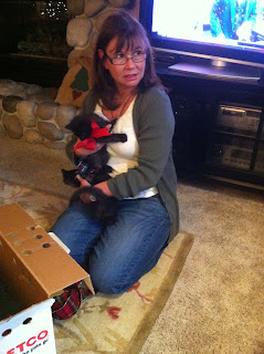 Blake's first looks at Merwin--love at first sight--just like her mama!